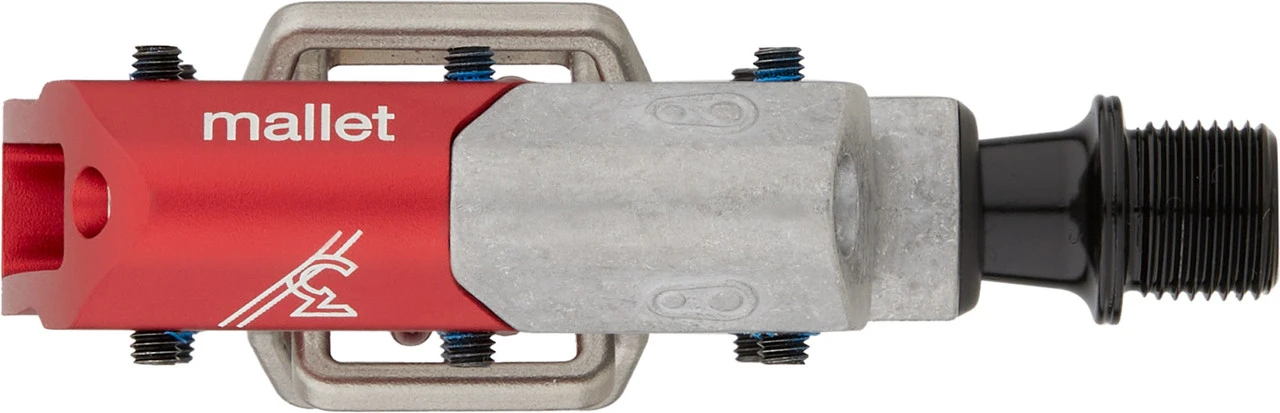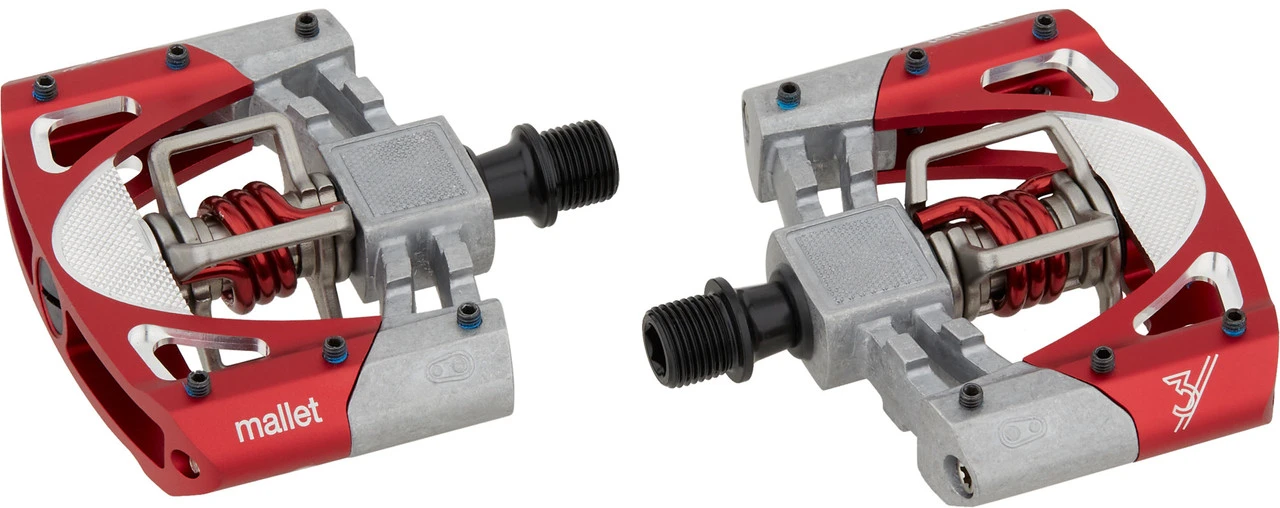 Spezifikationen:Einsatzbereich:All MountainAusführung:Klickpedale mit PlattformPedalsystem:crankbrothersMontage Schuhplatte:2-LochTechnische Daten:Material Pedalkörper:Aluminium (6061-T6)Material Achse:Stahl (scm435 CrMo)Lagerung:Igus LL Gleitlager (innen), Enduro Industrielager (außen)Auslösewinkel:15° oder 20° (je nach Montage der Cleats)Empfohlene Schuhplatten:crankbrothers Premium CleatsAnzahl Pins pro Pedal:12Pinhöhe:8 mmDistanz Pedalmitte/Kurbelarm:52 mmFeatures:Levelcode 3 (= Elite-Level)geschmiedete Stahl-AchseFlügel aus Edelstahl 17-4PHFeder aus 300er EdelstahlGefühl eines Plattformpedals plus Kontrolle eines KlickpedalsPlattform ganz aus Aluminium, für mehr HaltbarkeitEinstieg von vier Seitenexzellente SelbstreinigungBewegungsfreiheit und Auslösewinkel einstellbarPremium-Lagerung und doppelte Dichtungsechs Pins pro Seite (wechselbar)kein FahrergewichtslimitHerstellernummern:charcoal-electric blue:15988red-red:15989Lieferumfang:1 Paar Pedale crankbrothers Mallet 31 Paar Cleats crankbrothers Premium (Messing)