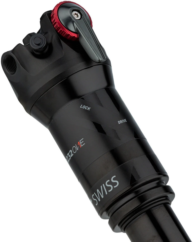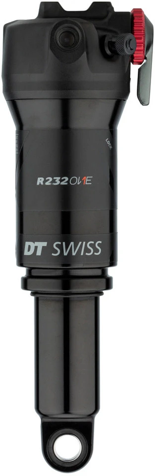 Der R 232 ONE Dämpfer von DT Swiss mit integriertem Einstellhebel und Trunnion-Befestigung