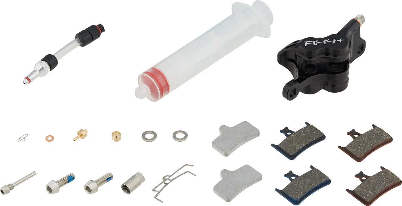 Lieferumfang:1 x Bremssattel Hope RX4+ PM für Shimano / Campagnolo1 Paar Bremsbeläge Hope blau für Road1 Paar Bremsbeläge Hope rot für Cyclocross / Gravel2 x Befestigungsschraube1 x R-Clip2 x Unterlegscheibe1 x Belaghalteschraube1 x Rückstellfeder1 x Olive1 x Insertpin1 x Überwurfmutter1 x Unterlegscheibe Kupfer1 x Spritze1 x Schlauch mit Adapter2 x Entlüftungsblock