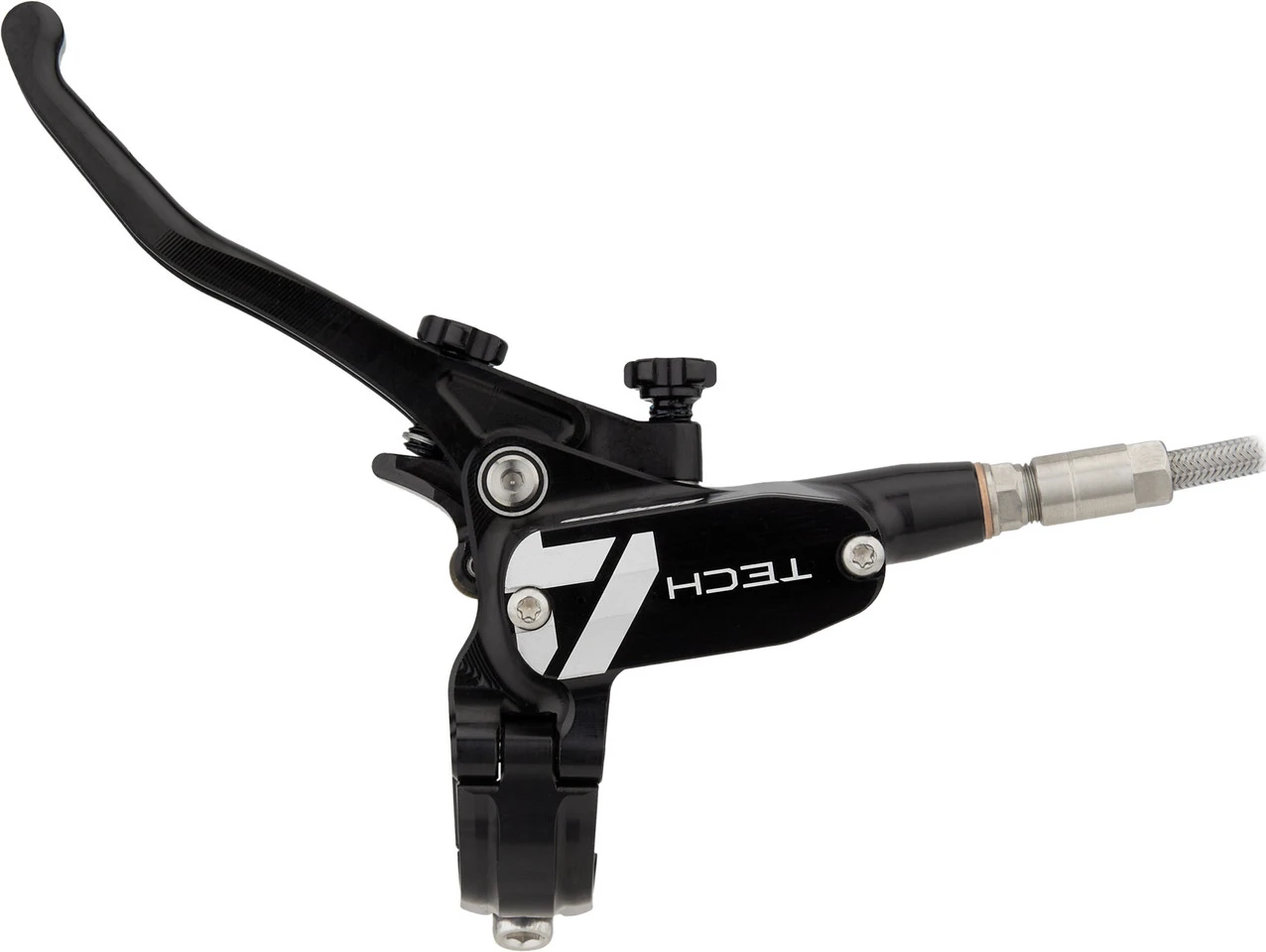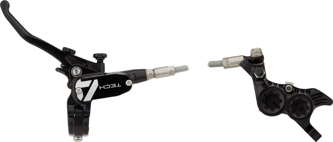 Spezifikationen:Einsatzbereich:Downhill, Dirtjump & SlopestyleBremsentyp:hydraulisch, 4-KolbenBremsmedium:DOT 5.1Leitung:StahlflexLeitungslänge VR/HR:1600 mmTechnische Daten Bremssattel:Montage Bremssattel:PostmountBremsbelag:Racing Organic Grade ResinBauweise:einteiligMaterial Bremssattel:AluminiumMaterial Kolben:Edelstahl, PhenolLeitungsanschluss:BanjoTechnische Daten Bremsgriff:Hebellänge:1-FingerEinstelloptionen:Griffweiteneinstellung, DruckpunktMontage:Klemmschelle (geteilt)Bauart:rechts (seitenspezifisch), links (seitenspezifisch)Material Bremshebel:AluminiumMaterial Bremsgriffgehäuse:AluminiumLeitungsanschluss:GeradeFeatures:hohe Bremspower für Bremsscheiben mit bis zu 220 mm DurchmesserPhenol-Einsätze in den Kolben und Kühlrippen am Sattel verhindern Überhitzungweiterentwickelte Technik mit deutlich mehr Druck verglichen mit Tech 3CNC-gefräster einteiliger BremssattelRollenlagerung im Hebelmechanismus verringert ReibungDruckpunkt und Hebelweite werkzeugfrei jederzeit anpassbarergonomische Hebelform für besseren Grip und weniger Ermüdungserscheinungenverstellbarer Hebelwinkelgeteilte Klemmschelledruckoptimierte und widerstandsfähige StahlflexleitungenHinweis des Herstellers:Der V4-Bremssattel ist aufgrund seiner Bauweise nicht kompatibel mit Gabeln mit PM 7-/Direct Mount 180 mm-Bremsaufnahme. In diesem Fall wird empfohlen, den V4-Bremssattel mit einem entsprechenden Scheibenbremsadapter und 200-mm-Bremsscheiben zu nutzen.