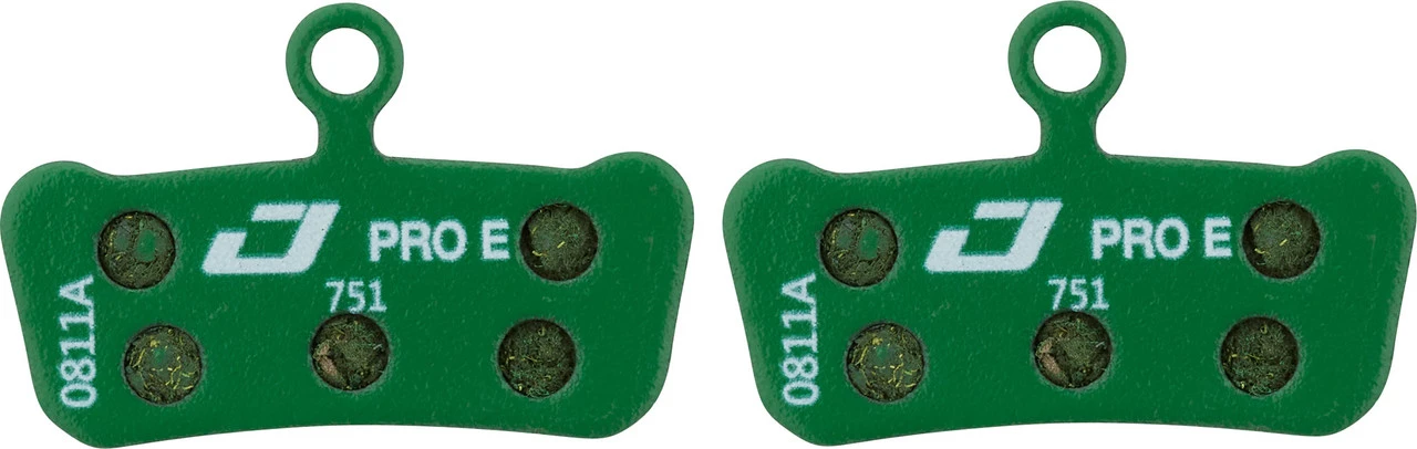 Die Pro E-Bike Bremsbeläge von Jagwire sind mit verschiedenen Scheibenbremsen von SRAM kompatibel und eignen sich aufgrund ihrer langen Haltbarkeit und starken Bremskraft besonders für Elektrofahrräder.