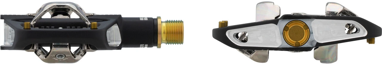 Spezifikationen:Einsatzbereich:Enduro, All Mountain, GravelAusführung:KlickpedalePedalsystem:SPDMontage Schuhplatte:2-LochTechnische Daten:Material Pedalkörper:AluminiumMaterial Achse:TitanDichtungen:doppeltBauhöhe:16,8 mmMaße [B]:67 mmBewegungsfreiheit:6°Auslösekraft:6 – 14 NmAuslösewinkel:13°Empfohlene Schuhplatten:X-Track Cleats, X-Track Easy CleatsDistanz Pedalmitte/Kurbelarm:55 mmFeatures:für die extremsten Bedingungen entwickeltäußerst robuster Pedalkörper aus geschmiedetem AluminiumAchse aus Titan mit exklusivem Gold-Finish für verbesserte Steifigkeit664 mm² AufstandsflächeSPD-KompatibilitätHerstellernummer:18233