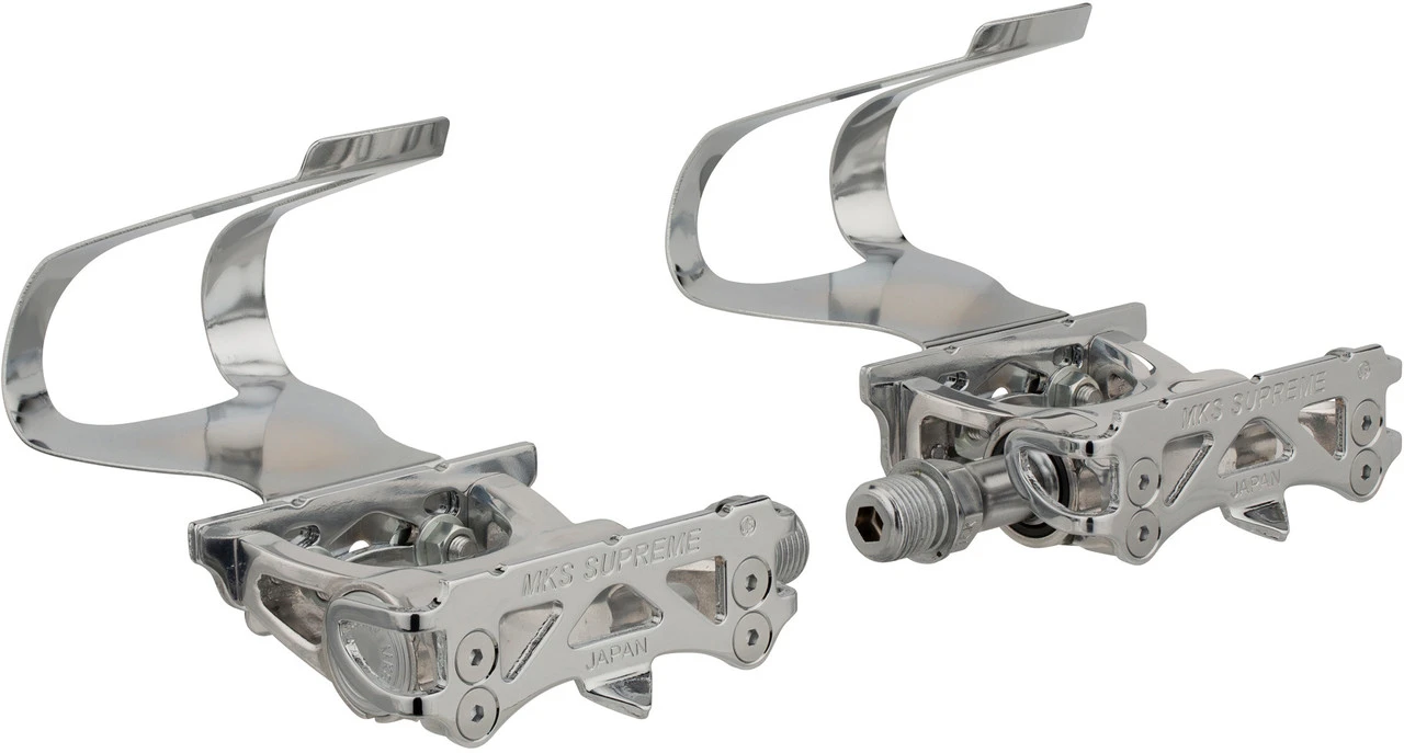 Die Half Clip Pedalhaken von MKS werden ohne Pedalriemen gefahren. Sie sind kürzer als andere Modelle und eignen sich deshalb besonders gut im Stadtverkehr, da das Ein- und Aussteigen in die Pedale erleichtert wird. Empfohlen für Radler, die nur leichten Zug an den Pedalen aufbringen. Die Half Clip Pedalhaken können an vielen