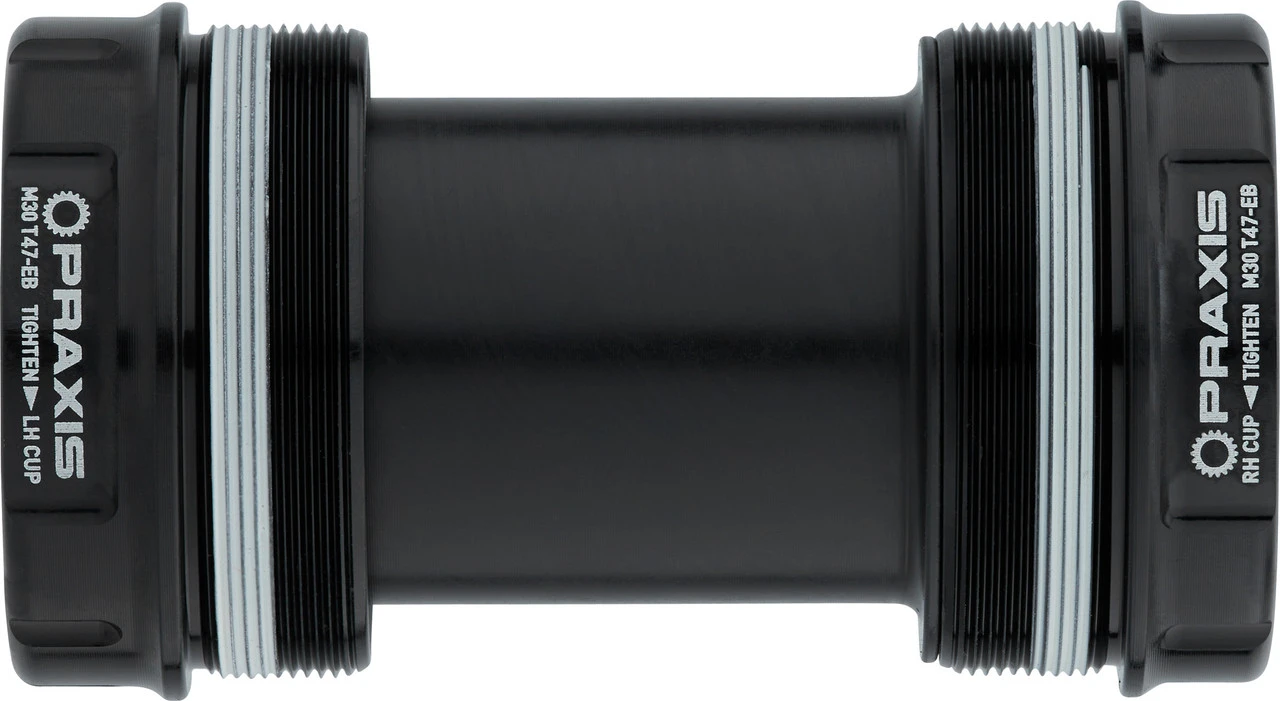 Mit dem Praxis Works M30 T47 Innenlager kannst Du eine Praxis Works Kurbel mit M30 Achse in einem T47 Rahmen mit externer Lagerung installieren. Es passt sowohl für 68 mm breite Rennrad-Tretlager wie für 73 mm breite MTB-Tretlager. Die M30 Technologie mit 30 mm Lager auf der Antriebsseite und 28 mm Lager auf der Nicht-Antriebsseite sorgt für satte Kraftübertragung.