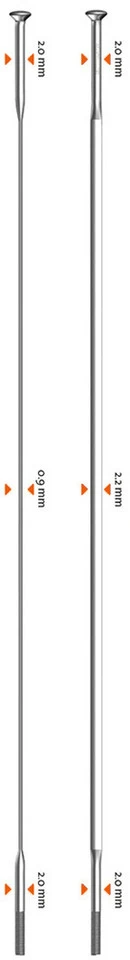 Technische Daten:Typ:Messerspeiche (Aero)Material:Edelstahl (18/8, AISI 302)Größe:14 Gauge (2,0 mm)Durchmesser:2.0-(0.9×2.2)-2.0 mmLänge:234 mm – 304 mm (in 2 mm Schritten)Festigkeit im Mittelteil:1600 N/mm²Kopf:Straightpull (gerade)Features:elliptischer Aero-Mittelteilhochzugfester Edelstahl, spezielle Aluminium-Behandlungbesonders haltbar, hohe Ermüdungsresistenzfast so leicht wie Speichen aus Titanpassen in alle Standard-NabenlöcherSapim Cold Forging Technologie (SCFT System)Fertigung nach ISO 9001inklusive 14 mm Nippel aus AluminiumFarbindex:schwarz:schwarze Speichen, schwarze Nippelsilber:silberne Speichen, silberne NippelLieferumfang:20 x Speiche Sapim CX-Ray Straightpull20 x Alu-Nippel Sapim 14 mm