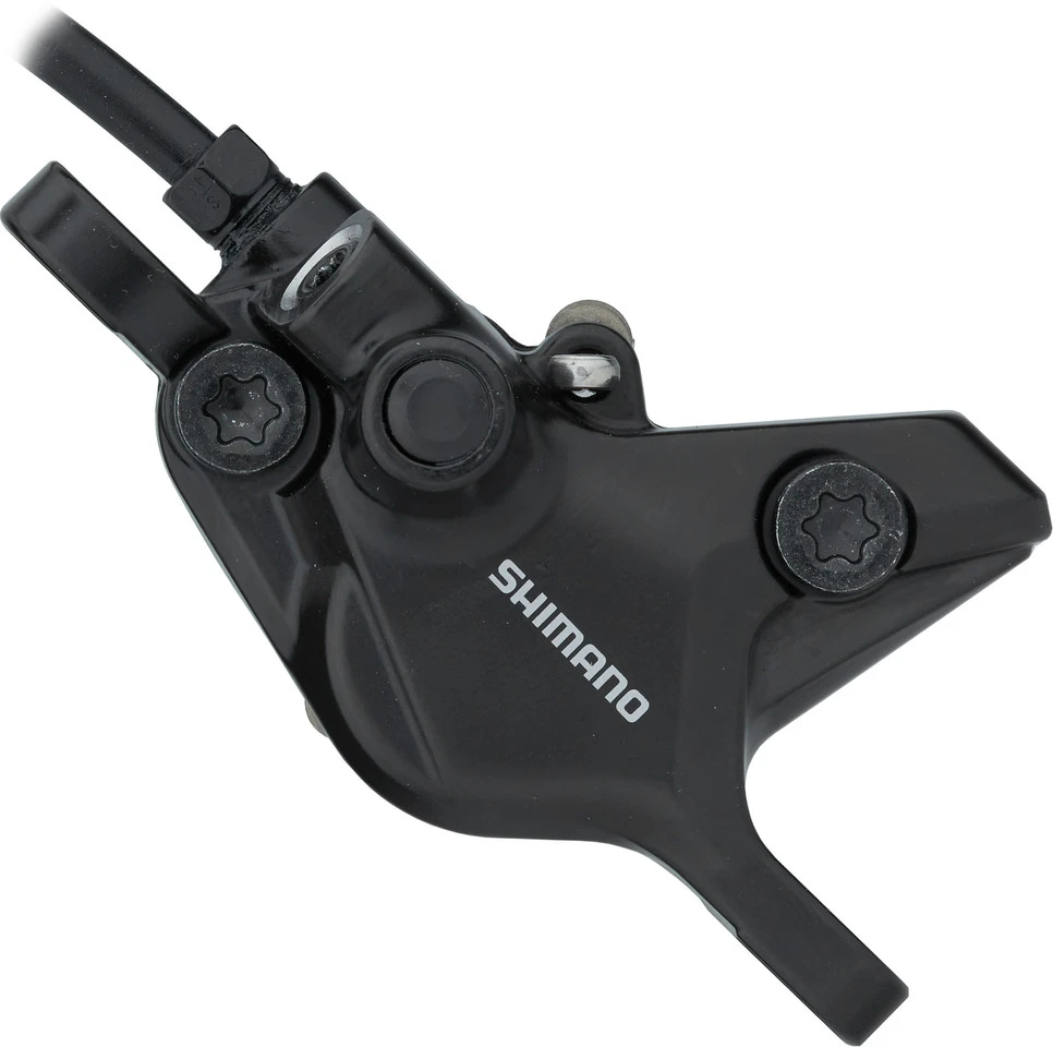 Dieses Shimano Scheibenbremsenset für den All-Mountain- und Trekking-Einsatz besteht aus zwei 2-Kolben-Bremssätteln BR-MT410 und zwei BL-MT401 Bremsgriffen mit 2-Finger-Hebeln. Diese haben eine per Werkzeug verstellbare Griffweite, die auch für kleine Hände bequem ist, und gefallen mit ihrem schlanken Design. Die ausgewogene Bremsleistung, das sehr gute Ansprechverhalten sowie die einfache Wartung mit Trichter-Entlüftung und One-Way-Bleeding-Technologie kommt Einsteigern zugute. Als J-Kit wird diese Bremse so ausgeliefert, dass Du sie unkompliziert montieren kannst, auch wenn eine Innenverlegung der Bremsleitung vorgesehen ist. Zwei Paar organische Bremsbeläge sind im Lieferumfang enthalten.