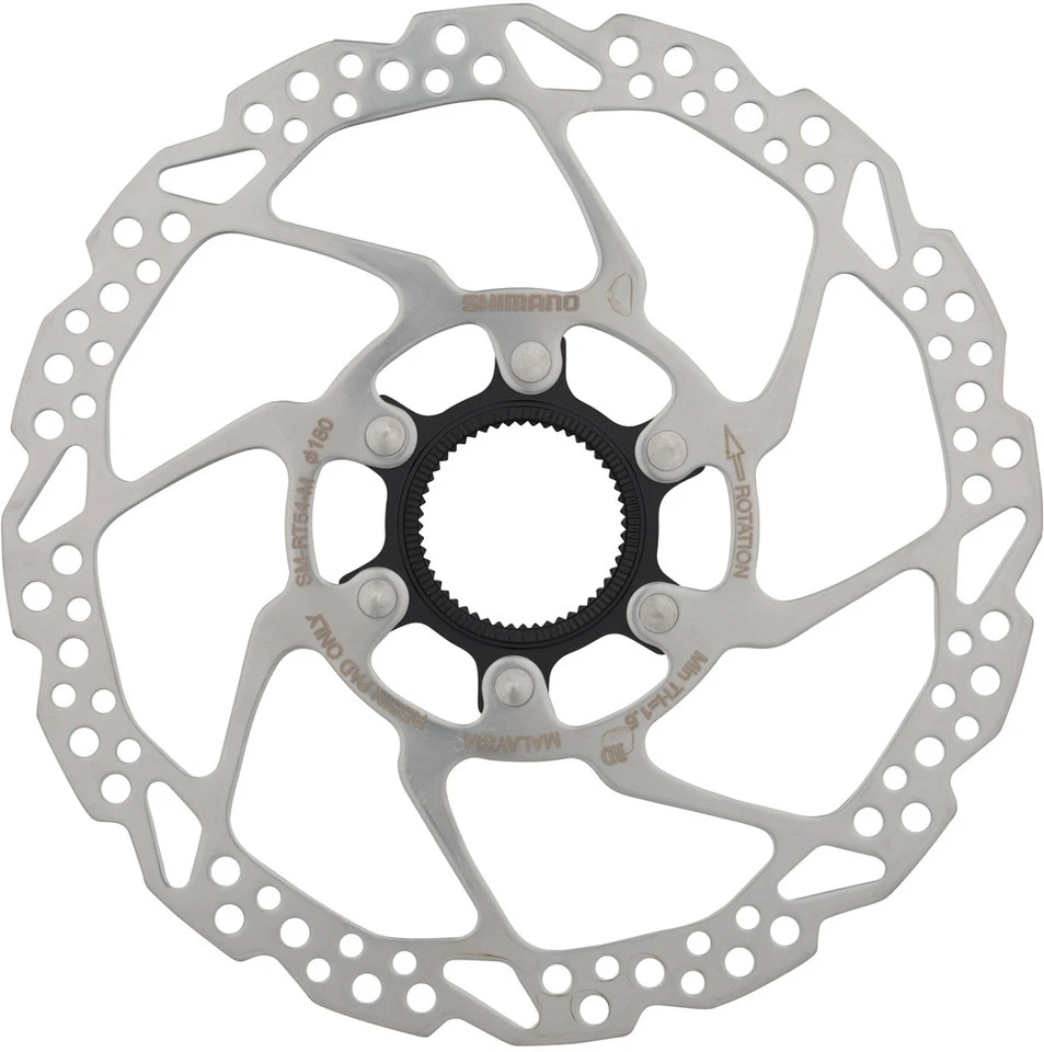 Die Shimano SM-RT54 Bremsscheibe kommt mit einem neuartigen Lockring, der an der Außenseite gezahnt ist. Sie darf ausschließlich mit Resin-Belägen verwendet werden. Ihr Körper besteht aus Edelstahl, der Spider ist aus Aluminium. SM-RT54 ist kompatibel mit Scheibenbremsen der Serien XTR, XT, SLX, Deore, Saint, ZEE, Alfine sowie mit vielen weiteren gruppenlosen MTB- und Trekking- Bremsen.