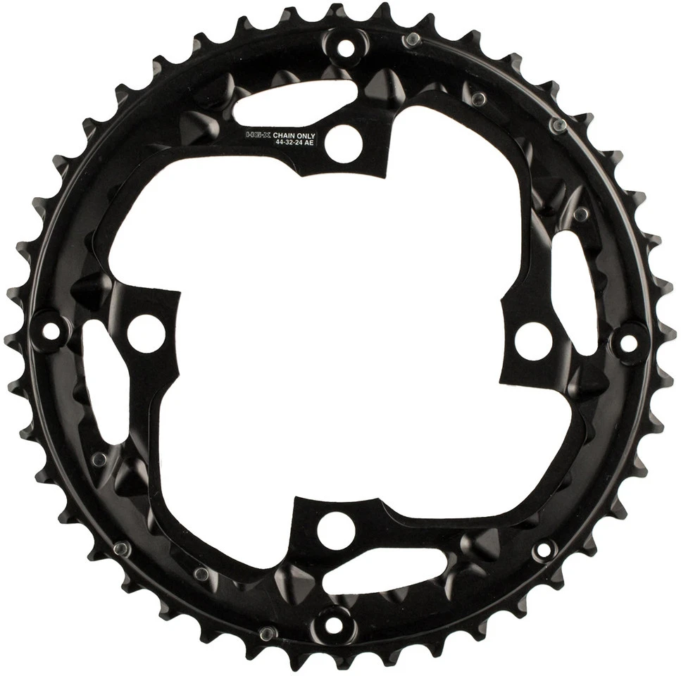 Spezifikationen:Einsatzbereich:Touring & TrekkingBefestigung:104 mm Lochkreis, 4-ArmZähne:44 Z, 48 ZSchaltstufen:3×10-fachTechnische Daten:Kombinationsmöglichkeiten:24-32-44 Z KSR, 26-36-48 Z KSRMaterial:AluminiumKompatibilität:Deore FC-T611auch verwendbar für FC-T521, FC-T551Features:eloxiertAusführung für KettenschutzringAusführungen:44 Zähne: