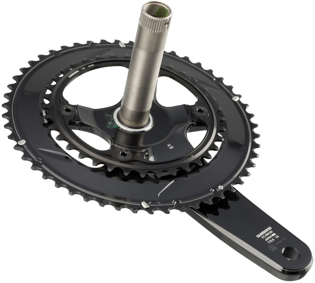 Spezifikationen:Einsatzbereich:Road, Triathlon & Time TrialKompatibilität:Shimano 2×11-fachKettenblattbefestigung:110 mm Lochkreis, 4-Arm asymmetrischTechnische Daten:Serie:Dura-Ace R9100Material Kurbelarme:AluminiumMaterial Kettenblätter:Aluminium, Carbon (CFRP) / AluminiumMaterial Achse:StahlAbstufung:34-50, 36-52, 39-53, 42-54, 42-55Kurbelarmlänge:165,0 mm, 170,0 mm, 172,5 mm, 175,0 mm, 177,5 mm, 180,0 mmKettenlinie:43,5 mmQ-Faktor:146 mmAchsdurchmesser:24 mmKompatible Gehäusebreite (bei BSA-Innenlager):68 mmInnenlager (empf.):BB-R9100 oder SM-BB92-41B Pressfit Hollowtech II (nicht im Lieferumfang)Kette (empf.):HG-EV 11-fach, HG-X11 (bspw. CN-HG901-11)Kompatibilität:Schaltgriff:ST-R9100, ST-R9120, ST-9001, ST-9000, SL-BSR1, ST-R8000, ST-R8020, ST-R8025, ST-6800, ST-5800, ST-R7000, ST-R7020, ST-R7025, ST-RS685, ST-RS505, ST-U5060, SL-RS700, SL-U5000, ST-RX810, ST-RX600, ST-R9150, ST-R9160, ST-R9170, ST-R9180, ST-9070, SL-9071, ST-R8050, ST-R8060, ST-R8070, ST-6870, ST-6871, ST-R785, ST-RX815Umwerfer:FD-R9100, FD-R8000, FD-5801, FD-R7000, FD-R9150, FD-R8050Innenlager:BB-R9100, SM-BB9000, SM-BBR60, SM-BB6700, SM-BB5700, BB-RS501, BB-RS500, SM-BB4600, SM-BB92-41B, SM-BB72-41B, SM-BB71-41B, BB-RS500-PBKette:CN-9000, CN-6800, CN-HG901-11, CN-HG701-11, CN-HG601-11, CN-LG500Features:optimale Kraftübertragung: optimales Verhältnis von geringem Gewicht und Effizienz4-Arm-Kurbelgarnituran rennspezifisches Scheibenbremssystem angepasstoptimiertes Verzahnungsprofil für breitere Teilung„Rider Tuned“-Abstufungsoptionenlegendäres Designhohlgeformte Kurbelarme (Hollowtech)hohlgeformtes großes Kettenblatt (Hollowglide)Kurbelarme und Kettenblätter eloxiertKettenblattschrauben aus eloxiertem AluminiumTechnologien:Hollowtech II