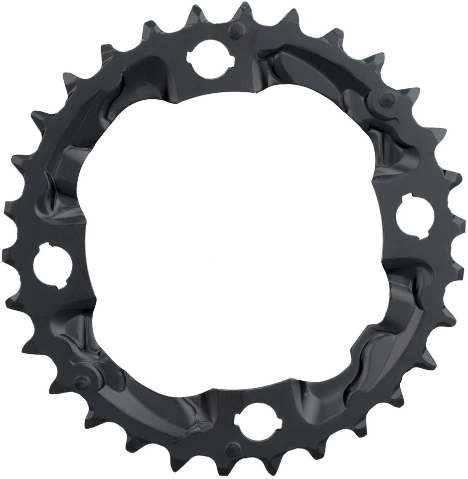 Dieses Shimano 10-fach Kettenblatt ist mit der FC-MT500 Triple Kurbel kompatibel. Es hat einen 4-Arm-Lochkreis von 96 mm und lässt sich für die Kombination 22-30-40 Zähne einsetzen. Die 30-Zähne-Version besteht aus Stahl, das 40-Zähne-Kettenblatt aus Aluminium.