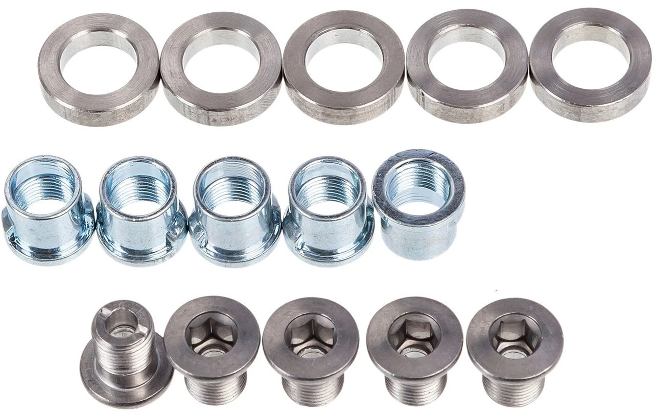 Lieferumfang:5 x Kettenblattschraube Shimano5 x Mutter Shimano5 x Spacer Shimano