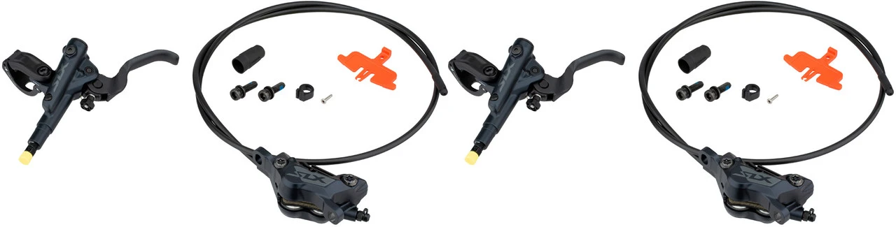 Lieferumfang:2 x Scheibenbremse Shimano SLX BR-M7120 + BL-M7100, VR und HR1 x Bremsleitung Shimano SM-BH90-SBM 1000 mm (VR)1 x Bremsleitung Shimano SM-BH90-SBM 1700 mm (HR)2 Paar Bremsbeläge Shimano2 x Insertpin4 x Befestigungsschraube Bremssattel2 x Sprengring2 x Olive (montiert)montagefertig, befüllt, nach der Montage ist eine Entlüftung zu empfehlenDirekt mitbestellen:Adapter für PM-Nichtdirektmontage und IS-MontageWerkzeug TL