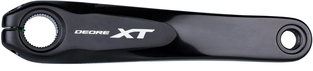 Die Shimano XT FC-M8000-B2 Kurbelgarnitur ist eine Variante der FC-M8000-2 mit 3 mm weiter außen liegender Kettenlinie. Sie kann daher nur in Rahmen mit 148 mm Einbaubreite hinten verwendet werden. Die Aluminium-Kurbel ist mit zwei Kettenblättern in der Abstufung 24-34 oder 26-36 Zähne bestückt. Sie wurde im Hinblick auf Übersetzung und gleichmäßigen Tretrhythmus optimal abgestimmt (Dyna-Sys11 Technologie), wobei das seit vielen Jahren bewährte Hollowtech II Design mit fest verbundener 24 mm Achse für ein ausgewogenes Verhältnis von Steifigkeit und Gewicht sorgt.