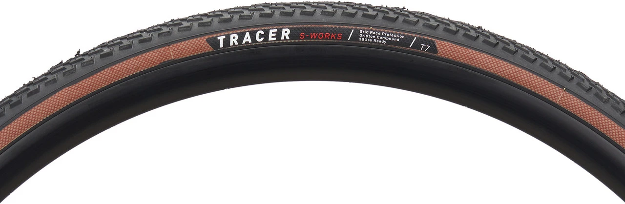 Der S-Works Tracer Faltreifen wurde von Specialized für Cyclocross-Rennen bei trockenen oder nur leicht feuchten Bedingungen entwickelt. Er hat ein feinstolliges Profil und bietet dank GRIPTON®-T7-Gummimischung Runde für Runde Top-Traktion. Die 120-tpi-Karkasse ist leicht und geschmeidig und verfügt über den Grid-Race-Pannenschutz. Diese kreuzgewebte Polyamid-Schicht wehrt Durchstiche ab und punktet dabei mit geringem Gewicht sowie Elastizität für besseres Feedback vom Boden. Natürlich ist der S-Works Tracer 2Bliss Ready, d. h. Du kannst ihn ohne Schlauch und mit geringem Reifendruck fahren. Mit seinen 33 mm Breite entspricht er außerdem den UCI-Regeln.