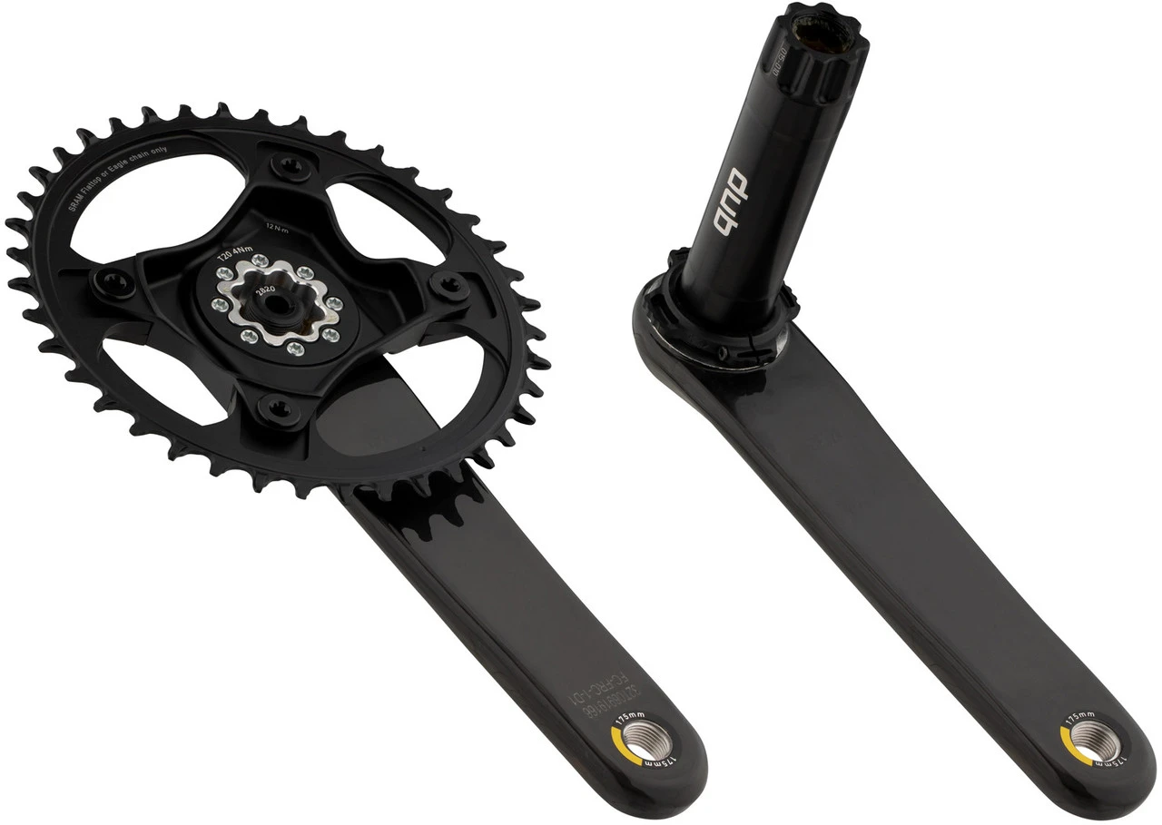 Spezifikationen:Einsatzbereich:Road, Gravel, Cyclocross, Triathlon & Time TrialKompatibilität:1×12-fachKettenblattbefestigung:107 mm Lochkreis, 4-Arm asymmetrischTechnische Daten:Serie:ForceMaterial Kurbelarme:CarbonMaterial Kettenblätter:AluminiumAbstufung:40 Zähne, 46 ZähneKurbelarmlänge:170,0 mm, 172,5 mm, 175,0 mmKettenlinie:45,0 mmAchsdurchmesser:28,99 mmInnenlager (empf.):DUB Road InnenlagerFeatures:leicht und widerstandsfähigguter Kettenhalt mit X-Sync Kettenblattlanglebig und einfach dank DUB-Technologiekann zum Powermeter aufgerüstet werdenTechnologien:DUB™: