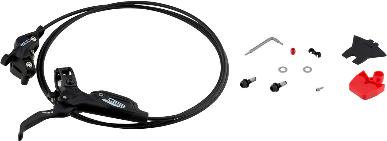 Herstellernummern:VR:00.5018.177.000HR:00.5018.177.001Lieferumfang:1 x Scheibenbremse SRAM G2 R (Vorderrad oder Hinterrad)1 x Bremsleitung SRAM 950 mm (VR) oder 2000 mm (HR)1 Paar Bremsbeläge SRAM organisch1 x Klemmschelle SRAM Matchmaker X1 x Transportsicherung SRAM1 x Entlüftungsblock SRAM Bleed Block2 x Schraube SRAM2 x Unterlegscheibe SRAM1 x Torx-Schlüssel SRAM1 x Insertpin SRAM1 x Olive SRAM1 x Leitungsclip SRAM