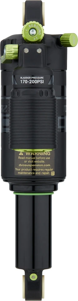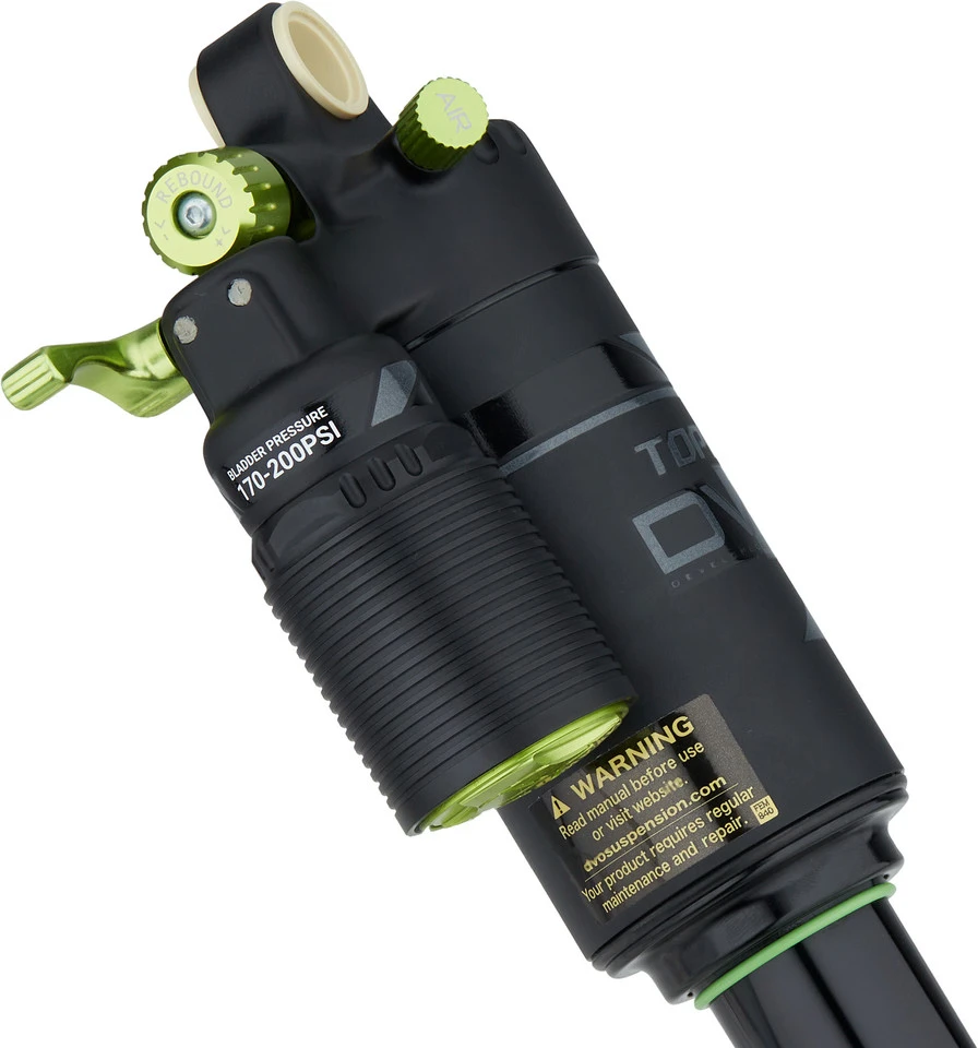 Spezifikationen:Einsatzbereich:Cross Country, All Mountain, EnduroFederung:LuftEinbaulängen x Hub:190 x 50 mm, 200 x 50 mm, 200 x 57 mm, 210 x 50 mm, 210 x 55 mm, 230 x 60 mm, 230 x 65 mmTechnische Daten:Dämpfungssystem:T3Material Buchsen:KunststoffMaterial Gehäuse:AluminiumMaterial Schaft:AluminiumEinstelloptionen:Druckstufe:Ja, 3-Positionen-Hebel (Open / Medium / Closed)Zugstufe:Low-SpeedRemote:NeinFreigaben:Luftdruck max.:235 psi (Luftkammer), 200 psi (Bladder)Features:T3-Hebel zur Einstellung der Druckstufe in drei Positionen: Closed für effizientes Pedalieren, Medium für wechselhafte Trails und Open für Abfahrteneinfach montierbare Volumenspacer für Positiv- und Negativluftkammer verwendbar, dadurch vielseitige Tuning-Optionensensibles AnsprechverhaltenKühlrippen am Ausgleichsbehälter leiten Wärme abBladder-Luftdruck zwischen 170 und 200 psi einstellbar zur Anpassung des Fahrverhaltensmit Dämpferpumpekommt in praktischem TransportkofferHerstellernummern:190 mm x 50 mm:1569177-1200 mm x 50 mm:1569179-1200 mm x 57 mm:1569155-1210 mm x 50 mm:1569161-1210 mm x 55 mm:1569159-1230 mm x 60 mm:1569158-1230 mm x 65 mm:1569156-1Lieferumfang:1 x Dämpfer DVO Suspension Topaz T3Air1 x Dämpferpumpe DVO Suspension5 x Volumenspacer DVO Suspension1 x Koffer DVO Suspension1 x Sticker DVO Suspension