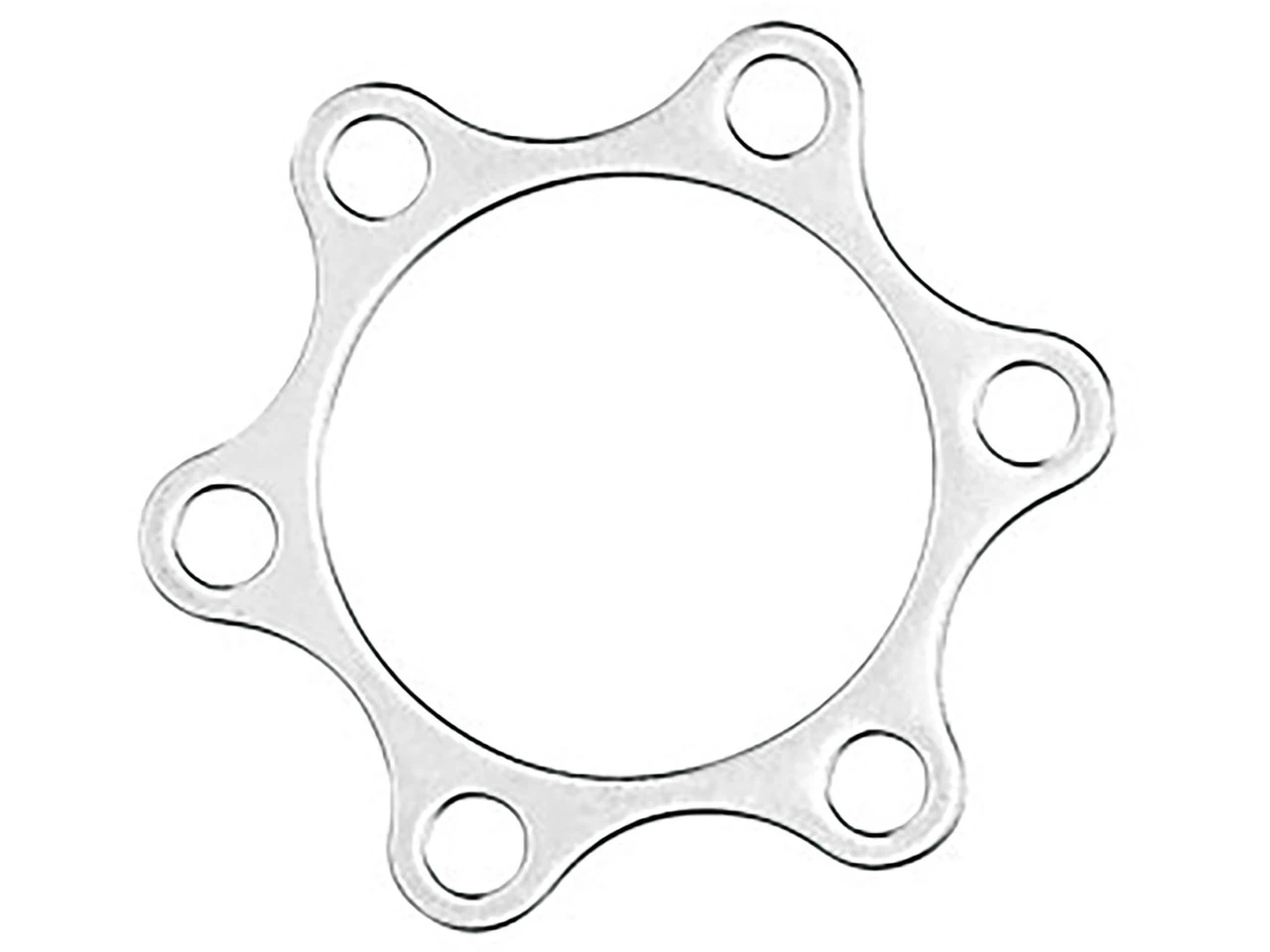 Die 6-Loch-Distanzscheibe wird zwischen Bremsscheibe und Bremsaufnahme der Nabe montiert, um die Bremsscheibe weiter in Richtung Tauchrohr/Bremssattel zu bringen.