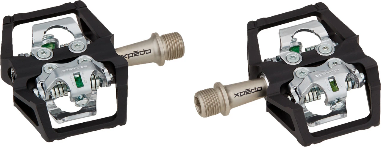 Spezifikationen:Einsatzbereich:MTBAusführung:Klickpedale mit PlattformTechnische Daten:Material Pedalkörper:AluminiumMaterial Achse:CrMo (Hohlachse)Größe:61,2 x 76 x 18,6 mmGewinde:9/16“Lagerung:Cartridge 3-fach, gedichtetBindung:doppelseitigBewegungsfreiheit:6°Auslösekraft:einstellbarKompatibilität:Shimano, SPDSonstiges:neue, offene Bauweise, selbstreinigendHerstellernummern:schwarz:XMF09AC blackgrau:XMF09AC greyblau:XMF09AC bluerosa:XMF09AC pinkLieferumfang:1 Paar Klickpedale Xpedo Baldwininkl. Cleats